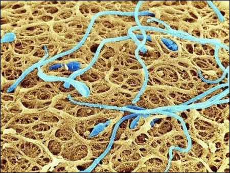 這張圖片上顯示的是大量精子正在爭(zhēng)先恐后地給卵子受精。