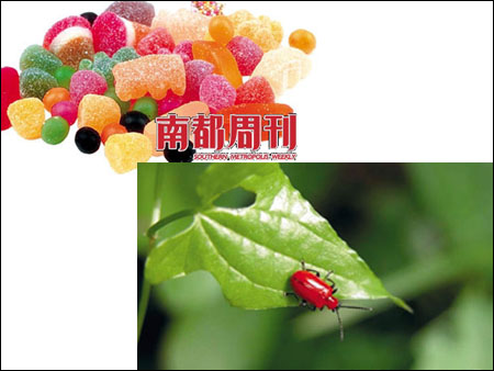 蟲膠來自紫膠蟲的排泄物,最常見的在泰國的森林。紫膠蟲用粘性排泄物作為停留在它所寄生的樹上的手段。糖果制造商用它令糖豆閃亮美麗,博得消費者的喜愛。