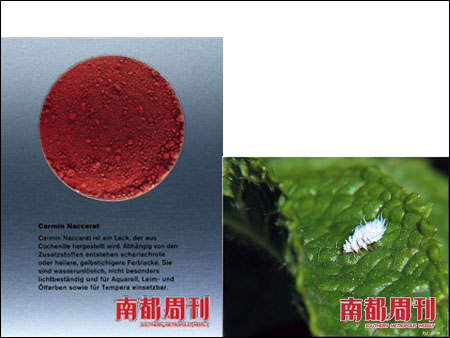 在食品標(biāo)簽上也被稱為深紅湖、胭脂蟲紅、天然紅色4或E120。胭脂紅實際上來自地面的胭脂蟲,制造胭脂紅時,將該昆蟲通過高溫暴曬或者熱水浸泡致死,然后再干燥之。因為它儲存著受精卵的腹腔部位含有最多胭脂紅,把它和身體的其它部位分離,磨成粉末,用高溫來煮以提取最大量的顏色。