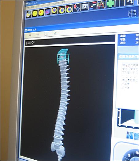 頸椎部位呈現(xiàn)藍(lán)色,顯示我的頸椎有問題