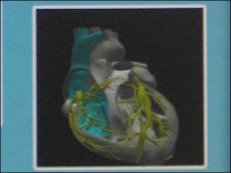 這是拍的展板上心臟的資料圖,黃色代表有炎癥,藍(lán)色代表功能退化或病變