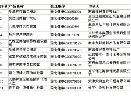 附:SFDA 3月份發(fā)布未獲批準(zhǔn)的(保健食品)產(chǎn)品名單(部分)