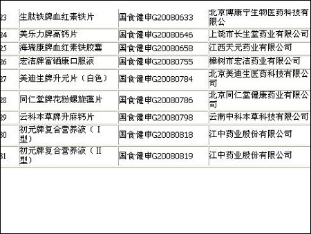從下表中可以了解到(第30、31項(xiàng)),兩個(gè)在申請過程中的"初元”產(chǎn)品均未獲得SFDA批準(zhǔn),是否因?yàn)楫a(chǎn)品存在技術(shù)缺陷尚不得而知!成琴女士提醒消費(fèi)者購買保健品時(shí)一定要認(rèn)準(zhǔn)保健食品標(biāo)志(一般稱為‘藍(lán)帽子’),因?yàn)榫哂斜=∈称窐?biāo)志的產(chǎn)品經(jīng)過了政府的審查,其生產(chǎn)過程在政府監(jiān)督之下,其安全性和有效性值得消費(fèi)者充分信任。