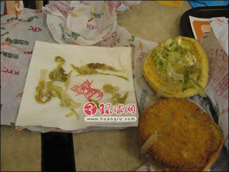 2008年8月,一名小朋友在肯德基長沙東風(fēng)路店食用一款漢堡之后發(fā)生連續(xù)嘔吐,另有家長也反映孩子吃到了發(fā)酸的同一款漢堡。一位姓王的女士稱自己帶孩子到該店用餐,孩子在吃一款名為田園脆雞堡的漢堡時說味道和平時有些不一樣,菜葉有點(diǎn)酸,并懷疑是特意用酸菜做的漢堡。王女士稱當(dāng)時自己也沒有引起重視,孩子吃下了整個漢堡。半個小時后情況出現(xiàn)了,孩子跑到衛(wèi)生間不停地嘔吐,約10分鐘之后,又吐了一次。這才懷疑漢堡里的菜葉變質(zhì)了。在店內(nèi)就餐的另一位孩子的家長盧女士也發(fā)現(xiàn)了同樣的問題。