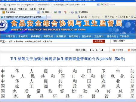【byb.cn XJ】 2009年5月6日,衛(wèi)生部網(wǎng)站發(fā)布公告《衛(wèi)生部等關(guān)于加強(qiáng)生鮮乳品抗生素殘留量管理的公告(2009年 第6號(hào)) 》,衛(wèi)生部、工業(yè)和信息化部、農(nóng)業(yè)部等六部委近日聯(lián)合發(fā)布公告,嚴(yán)禁在乳品標(biāo)簽、標(biāo)識(shí)和廣告中宣傳“無(wú)抗奶”等不科學(xué)、不符合實(shí)際的內(nèi)容。自4月22日起,各乳品生產(chǎn)經(jīng)營(yíng)和餐飲企業(yè)應(yīng)當(dāng)停止“無(wú)抗奶”生產(chǎn)經(jīng)營(yíng)活動(dòng)。監(jiān)管部門自2009年6月30日起開(kāi)始依法查處。