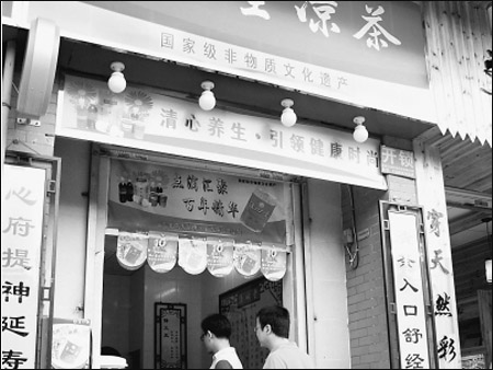 廣州市民在涼茶店喝茶。