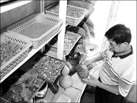 兩年前,父親鬼使神差地迷上學(xué)醫(yī),先是自己買回幾箱子醫(yī)學(xué)書,飯不吃、覺不睡一頭扎進(jìn)書堆里,一看就是一整天,連以前最喜歡的打麻將的愛好都戒了?!肮庋芯康挂擦T了,后來發(fā)展成到處給人治病?!毕仁侵蔚驌p傷、關(guān)節(jié)炎、風(fēng)濕等,做這些好事家人也支持,可后來他對這些“小病”看不上眼了,專門找些癌癥病人來治,上周又迷上治療白血病。