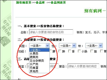 點擊此鏈接,進入別有病網(wǎng)站食品庫:http://www.fangyingfang.com/foodslist.aspx