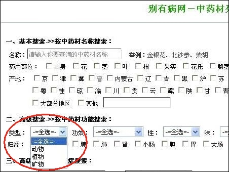 二、強(qiáng)大的搜索查詢功能。這是別有病中藥庫的最大特點(diǎn)。在搜索查詢時(shí),我們分成了兩大類查詢,即“基本查詢功能”和“高級(jí)查詢功能”。