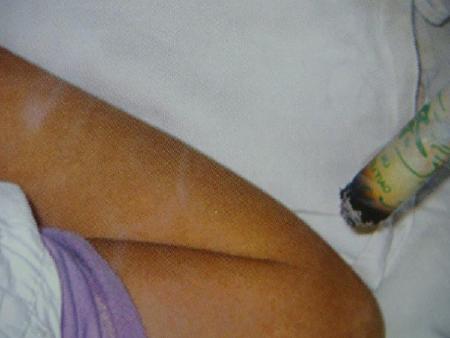 有人不知道什么叫艾灸.這東西中藥店都有賣的,很便宜.粗細(xì)相當(dāng)于一個大拇指,點燃了會冒很多的煙出來,說白了,就和你拿個卷煙去熏一樣.只不過,一根卷煙的熱度不夠,而且成本也高.用艾灸的效果很好.只是有煙,比較煩.這個工作最好在衛(wèi)生間進(jìn)行,開著抽風(fēng)機(jī).