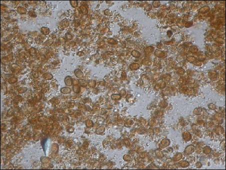 圖1為A公司在市場中銷售的XXX牌破壁靈芝孢子粉,在800倍顯微鏡下的破壁效果圖(粉末狀為靈芝孢子粉破壁后的狀態(tài),顆粒狀為未成功破壁的靈芝孢子實體)