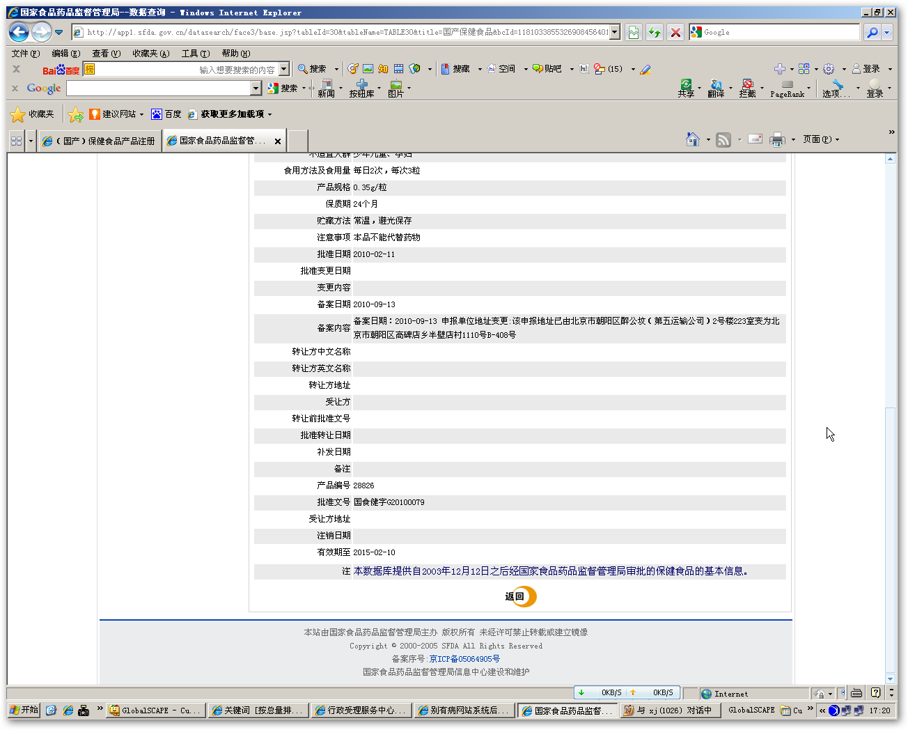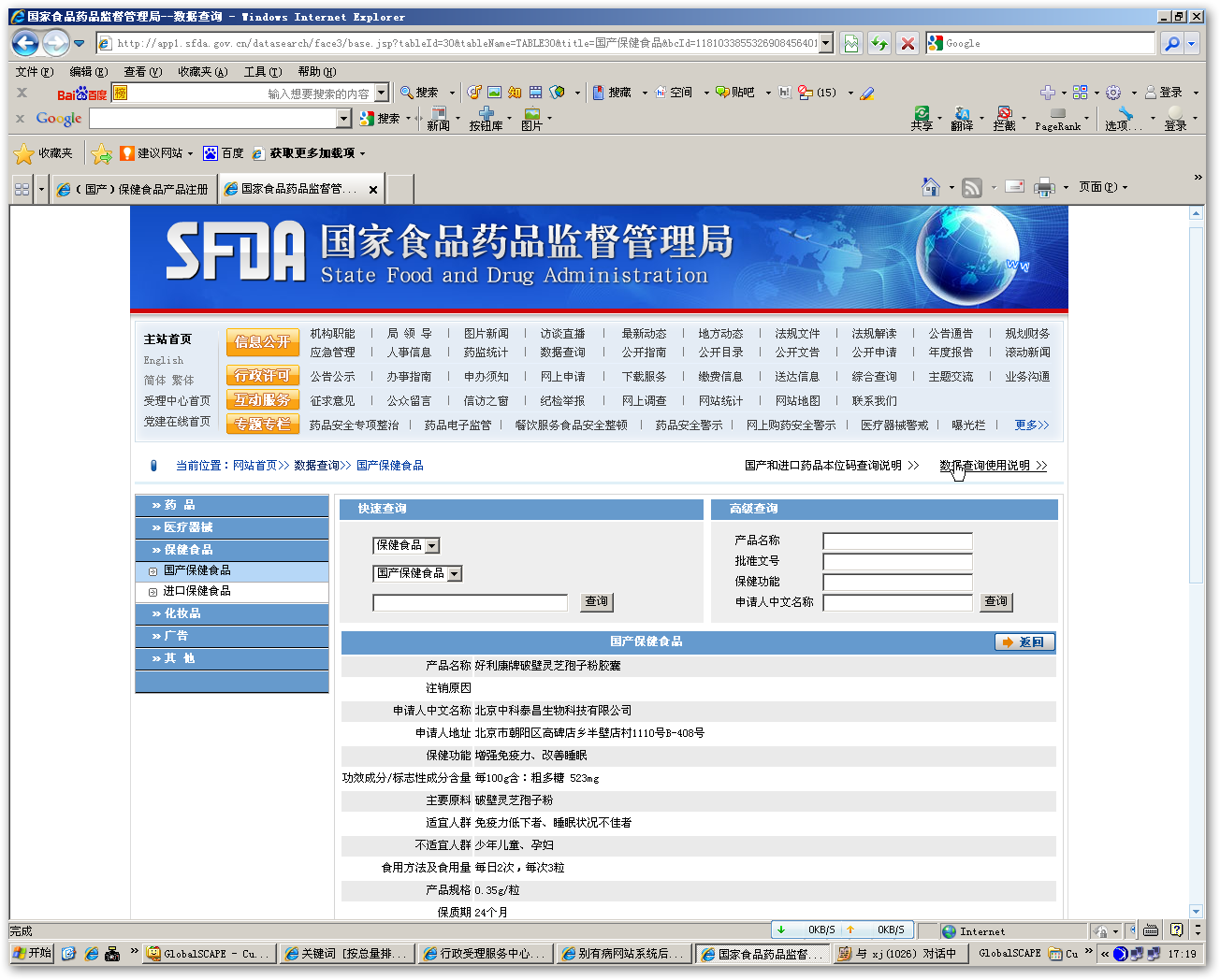 下面是官方網(wǎng)站的查詢地址:http://app1.sfda.gov.cn/datasearch/face3/dir.html,大家點擊國產(chǎn)保健食品,再輸入批準(zhǔn)文號,或者其他的內(nèi)容,都可以查到。