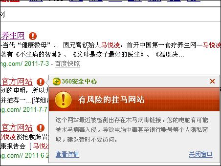 馬悅凌官網(wǎng)被360安全衛(wèi)士診斷為掛馬