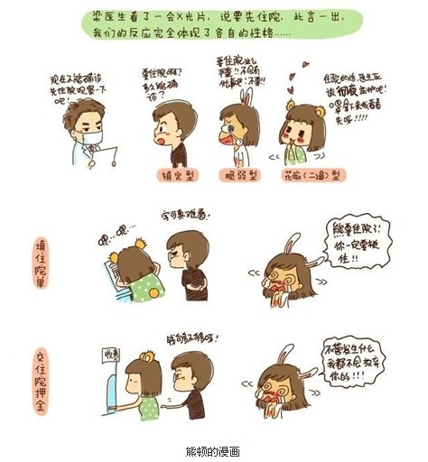 “沒有走不出的困境,只要抱著堅定的信念和樂觀的心態(tài)。”熊頓用這樣一句話總結(jié)了她的心情。漫畫中的醫(yī)生、父母、朋友都是以卡通的形象出現(xiàn)。就連患者自己,也被描繪成了一個沒心沒肺的姑娘。