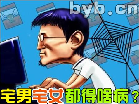 【byb.cn 大道至簡】 那天公司里的一個同事和我說,你寫寫宅男宅女病吧?我反問他,什么是宅男宅女病?他說自己也不知道,就是那天在一個論壇里看到的。說是有不少人,大門不出,二門不邁,天天泡在網(wǎng)上,最后得了一身的怪病,據(jù)說有的還有生命危險。為了印證他說的情況,我這兩天沒干別的,天天泡在網(wǎng)上,搜索相關的資料,為大家寫下這篇文章。
